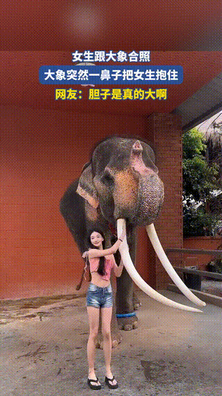 視訊中,一位勇敢的女生站在一頭龐大的大象旁,當她伸手撫摸大象的瞬間,大象突然溫柔地用鼻子環抱住她。彷彿時間瞬間凝固,這個畫面既驚險又令人心動。大象的長牙和異常修長的腿引起網友們的激烈討論,這究竟是怎麼回事呢?